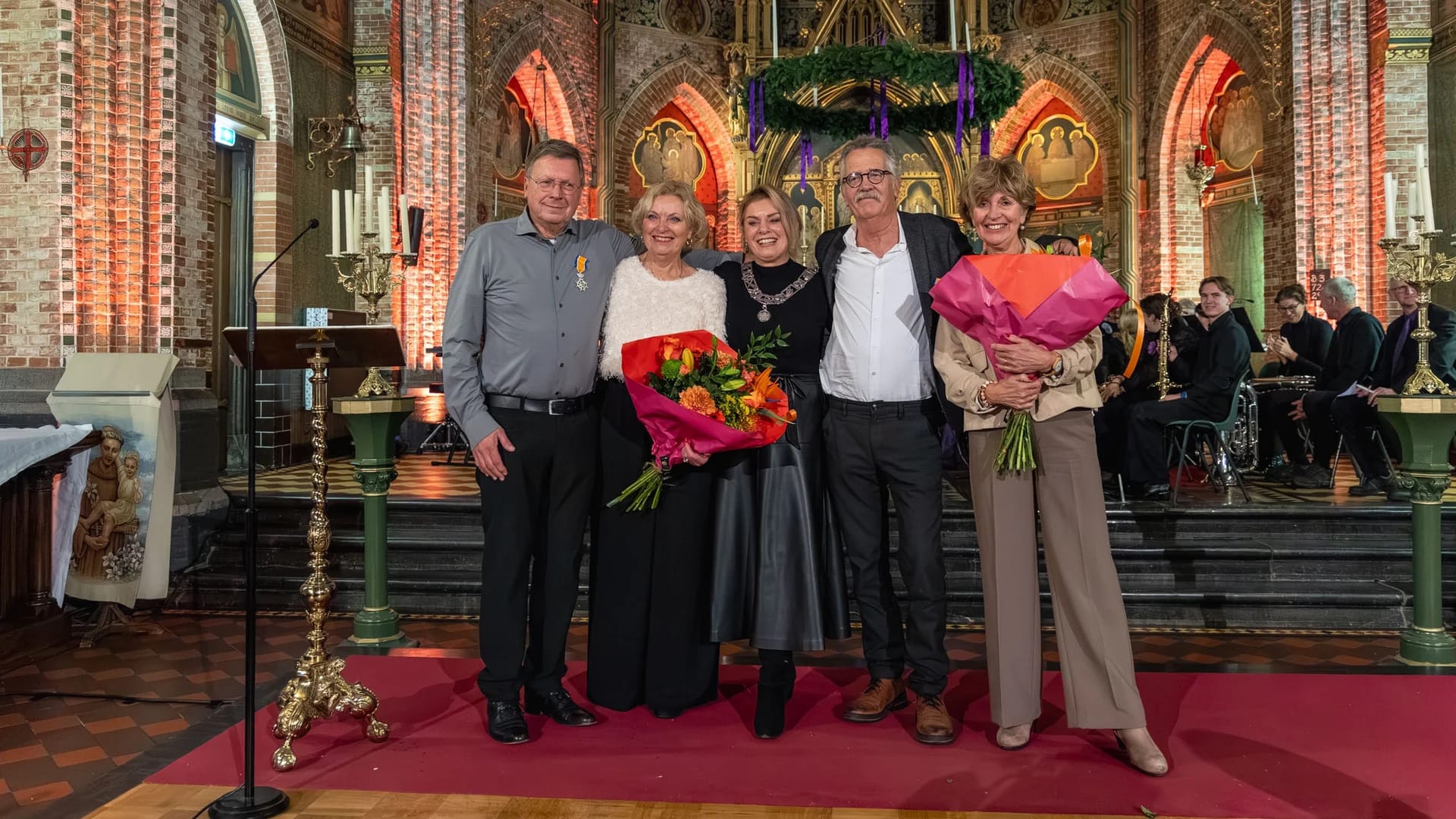 Wat een fantastische dag was het zaterdag 6 december. Een geweldige kerstmarkt in onze mooie St. Martinuskerk met drommen mensen die voor de handel kwamen. Aansluitend een prachtig programma met zang, muziek, samenzang en natuurlijk de humor- en betekenisvolle verhalen van pastoor en maat Henk van der Veer. Op verzoek van pastoor nam onze burgemeester Jannewietske de Vries het woord en na een introductie klom Henk het altaar op en luisterde naar de mooiste verhalen over hem en hij werd gedecoreerd met een welverdiende koninklijke onderscheiding. Ik zie mijzelf nog dat ik 2 duimen opstak naar hem want zo trots was ik op hem.