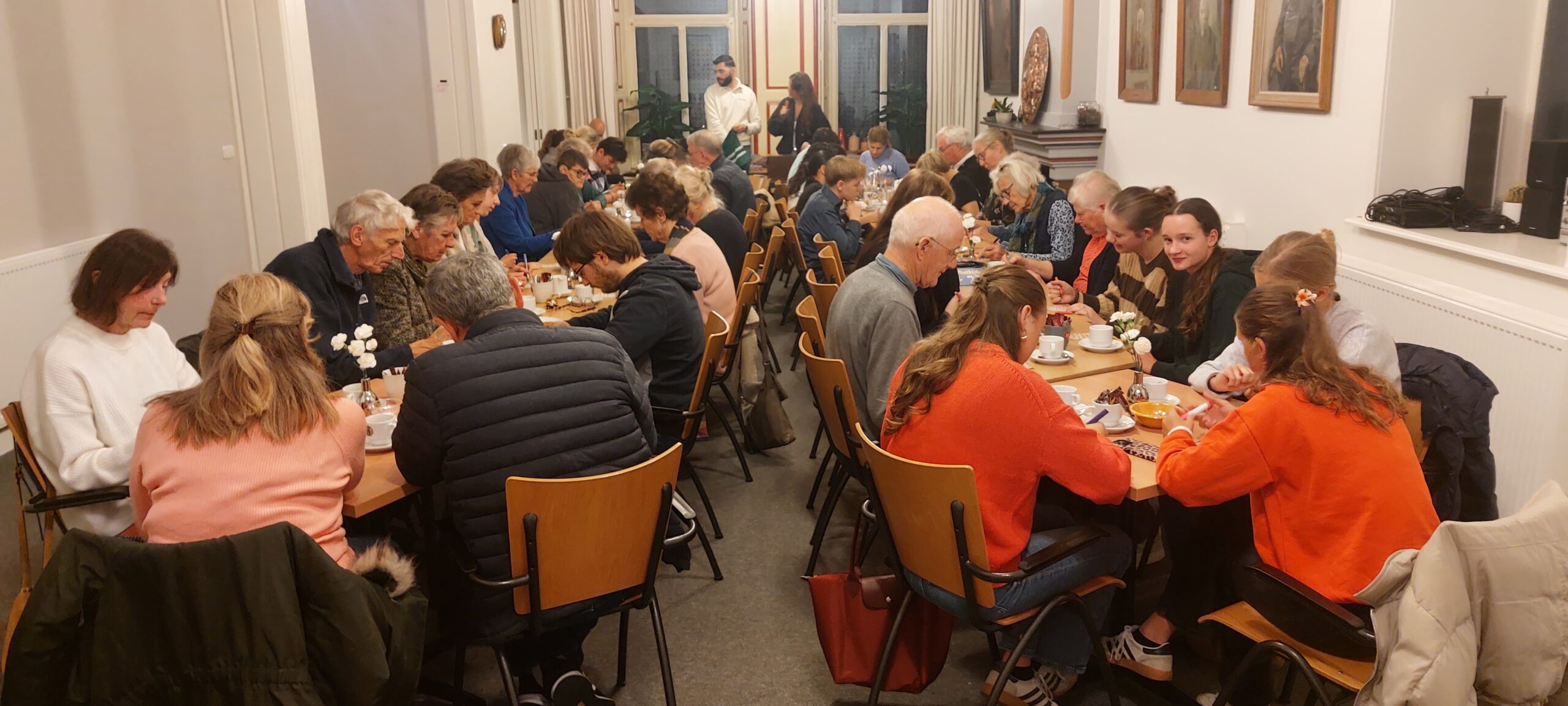 De bingo was onderdeel van de jongerenavond, waarbij dit keer ook de ouderen van harte waren uitgenodigd. Tussen de rondes door kregen de jongeren een bijzondere opdracht: interview de oudere naast of tegenover je. Dat vonden ze best spannend, maar het leverde prachtige gesprekken en bijzondere ontmoetingen op.
